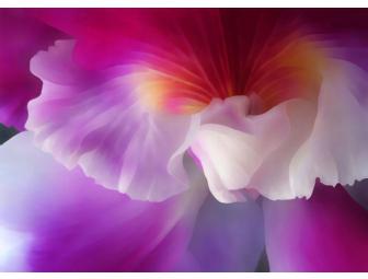 36" x 26" Orchid painted by using a computer as the art medium. The painting is then printed on a metal surface with floating mount, which best captures the vivid colors.