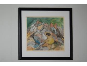 You are bidding on a framed original water color painting by Andover artist Louise Ponti, painted at Christmas Cove, South Bristol, Maine. This piece is double matted and framed to 17"x14."