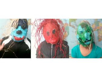This item includes 3 one-hour sessions at your home for ages 7-10 for 3-6 children. Kids love to get their hands dirty and to make stuff. Judy Shinatni will come to your home and guide them through making masks, using paper mache material, acrylic paints, and found/recycled objects for embellishments. While having fun they will learn about sculpture, color mixing, and imagination.