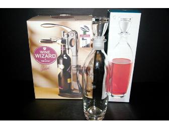 BLOWN CRYSTAL GLASS WINE DECANTER AND WINE WIZARD WINE BOTTLE OPENER