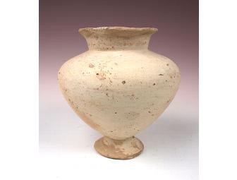 "From the time of Abraham, an elegant clay Crater with cream burnished slip, used to mix wine and water. Even down to the time of the Romans, all wine was fortified: similar in consistency to port wine today, so Craters, such as this example were used to water it down before serving. for related examples see: Amiran, R. "Ancient Pottery of the Holy Land" page 97.