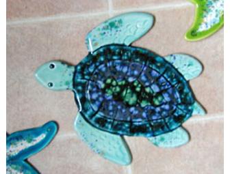 Hand made, slab built low fire ceramic wall tile with crystal and gloss glazes. 8" wide x 9.5" tall, wire in back for hanging.