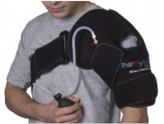 The ThermoActive™ Shoulder Support is individually designed for left or right shoulder to maximize fit and effectiveness of shoulder therapy. The easy-to-apply body strap allows you to easily move and walk while wearing the support during treatment. The circumferential compression secures the gel pack to your entire shoulder area, which typically is very difficult to fit with just a wrap.