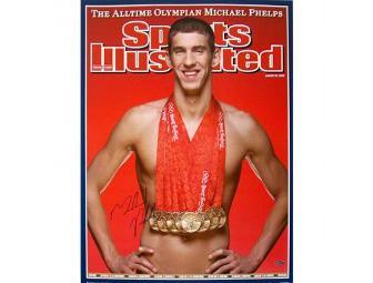 Michael Phelps's accomplishments as an Olympian are astounding. After winning an amazing 6 Gold Medals at the 2004 Olympic Games in Athens, Michael Phelps set out on a quest to break Mark Spitz's record of 7 gold medals in a single Olympic games in Beijing. Michael Phelps did not disappoint his millions of fans, winning gold in all 8 events he competed in during the Beijing games as well as setting 7 World Records and 1 Olympic record in the process. Michael Phelps is now being discussed not only amongst the greatest Olympians during the Beijing games but the greatest Olympians of all time. Michael Phelps has hand signed this beautiful 18x24 Sports Illustrated cover print reproduction entitled "8 Gold Medals." A Steiner Sports Certificate of Authenticity is included.