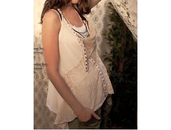 Cotton and lace and metal grommets in a loose fitting flattering silhouette.