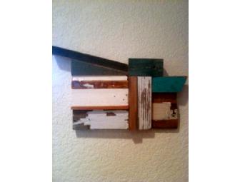 From Studio22 in Boulder, Colorado (www.studio22art.com), this salvaged wood assemblage evokes a modern-style "beach house." It measures roughly 9"x7 1/2".