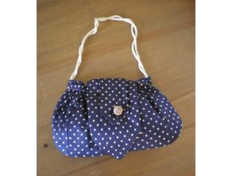 This 8" x 5 1/2" in. evening bag is made from one man's silk necktie! Handmade by Jeanne Brody. To order additional evening bags, please contact Jeanne Brody at craftynana1[at]gmail.com.