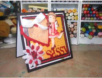 Image is stamped and then colored by hand, embellished with lots of glitter and perfect for that special someone who is a bit on the sassy side. Inside is blank, envelope is included.