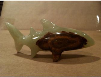 Hand-crafted onyx shark. Each individually created by hand. These pieces were donated by the artist Roy Young in an effort to raise awareness and funding for shark conservation. Great for gifts!