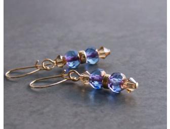 Topaz Swarovski crystals, with blue lavender faceted Czech glass, and gold-filled accents, on petite, gold-filled kidney wires.