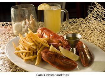 Sam’s eco-friendly menus prepared by award-winning Executive Chef/Partner Lewis Rossman offer daily fresh fish—grilled or sautéed, live Maine lobster, fresh local crab, fried calamari, Ahi Tuna Poke, oysters or clams on the half shell, fish and chips, Sam’s famous Clam Chowder, Maine Lobster Roll and other local specialties.