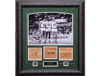 Boston's Big Three Parquet Collage Hand Signed by Larry Bird, Kevin McHale, & Robert Parish