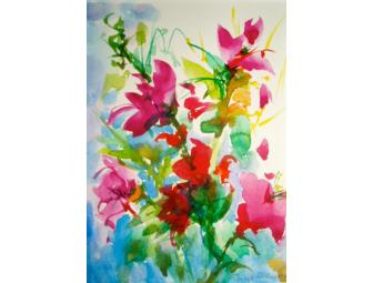 The original watercolor was painted by Joye Schwartz of Joyefulart located in Philadelphia. Joye is a colorist who works in watercolors and oils and has been exhibiting and selling artwork since 1987. Her artwork is in collections in the United States, Israel, and Australia. She currently teaches painting privately and paints in her studio in Elkins Park, Pa.