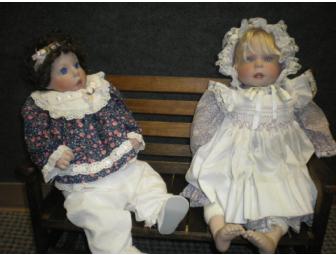 Two Lee Middleton dolls from the Toddler Collection + doll bench