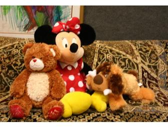 This stuffed animal collection includes High School Musical bear, Minnie Mouse, and a lovable dog.