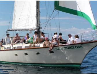 Seacoast Sailing will ferry 24 passengers around scenic Boston Harbor on New Horizons, a custom-built, Coast Guard-certified Tortola Motorsailer. Skim across the water and admire views of Boston's dazzling skyline and the legendary harbor in which revolutionaries once dumped barrels of tea to compliment a capsized shipment of crumpets. During the three-hour excursion, seafarers will sail the Atlantic past the Harbor Islands, affording a glimpse of George's Island's Fort Warren, a former prison for captured Confederate soldiers. Mariners can relax on the 50 feet of deck space and dine on gourmet appetizers inluding bacon-wrapped scallops, quiche and meatballs. BYO cooler of beer and wine.