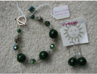 Beautiful matching bracelet and earring set made with gorgeous green vintage beads, sterling silver bead caps and Swarvoski crystal accent beads. This set would make a wonderful Mother's Day or birthday gift.
