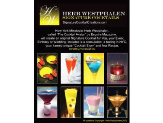 Famed mixologist Herb Westphalen will create a custom cocktail specifically for you. Perfect for a large party, reception or wedding. His awareness of food, spices and herbs make his drinks utterly delectable and beyond what most drinkmakers are doing now. Plus having something created in your honor or for your special occasion can't be beat! Bid and see what YOUR drink might be...!
