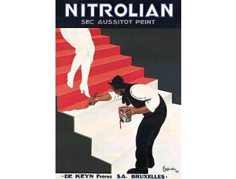1929 iconic Belgian advertising poster (62.5 x 46.5, it's big!) by Cappiello. It was designed to show how quick drying this paint is and was not only an advertisement but a label for the paint can. That woman can march down those steps and that paint will be dry damn it.