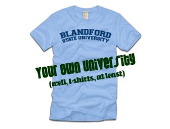 The winning bidder will get 10 (ten) t-shirts with a graphic of their "own" university. It can be a school, a team, an alumni association -- anything that "seems" like it's a school.
