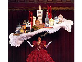 2 Tickets Rear Cabaret or Rear Balcony. If you've never seen this show, it really is a must, and fun for kids and adults alike. Steve Silver's Beach Blanket Babylon, the longest running musical revue in theatre history, is a zany musical spoof of pop culture with extravagant costumes and outrageously huge hats. Now in its 37th year of sold-out performances, Beach Blanket Babylon is an internationally acclaimed San Francisco institution. With more than 12,000 performances in San Francisco, the show has performed for standing room only during its London and Las Vegas engagements. Beach Blanket Babylon continually evolves in its hilarious parodies of current events and popular icons as todays headlines unfold.