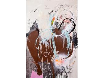 Attentisme 2 is mixed-media on canvas, 40"x 60", 2011, and given in collaboration with Rebekah Jacob Gallery, with custom framing by local framers Artizom. Winning bidder is responsible for any shipping costs.