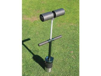 This is the hole cutter for the future. The features include utilizing a built in slide hammer (with noise damper) for easy and accurate cutting, built in level on the handle for vertical cutting, stainless steel blade for greater durability and blade sharpness, two cutting depth gauges for regulation and putting cup depths making the depth right every time, quick blade change over, padded handles for comfort. The precision cutter comes complete with video showing all the features and tips for better cup cutting and has proven to reduce cup changing time by approximately 30 minutes per day on a typical eighteen hole course. Two blade choices for either sand or clay.