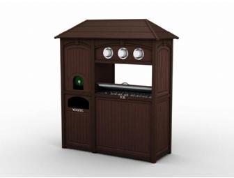 Store ice and dispense water and cups all in one convenient unit. Includes rigid waste liner.