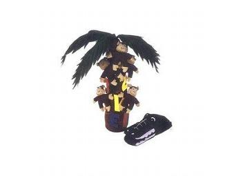 Five adorable monkeys, a cloth palm tree, alligator, letters, and numbers by Alma's Designs. Each piece attaches easily to the palm tree with velcro.