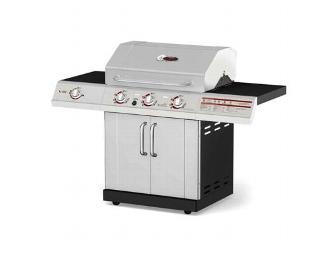 This outdoor Charbroil Red grill constructed of Porcelain coated cast iron grates with wood chip opening has infrared heat that locks in moisture and flavor! Simply drop wood-chips through the grates and watch them start to smoke on the u. It has 500sq. inches of primary cook surface and 180sq. inches of secondary cooking space. It has a wide temperature range for intense searing at the cooking surface down to slow-and-low barbequing and rotisserie cooking. Now that's a backyard party! Bid generously and enjoy.