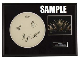 The Eagles are one of the highest selling American bands in US history, with over 100 million albums sold on US soil alone. The Eagles have had 6 number one albums, 5 top songs, 6 Grammy Awards, and 5 American Music Awards to boot. As if that wasn’t enough, these Rock and Roll Hall of Famers also earned acclaim for producing the best-selling album of the 20th century, Their Greatest Hits (1971-1975). This drumhead is signed by Don Henley, Joe Walsh, Randy Meisner, Don Felder, and Glenn Frye.