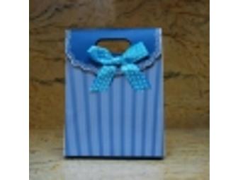 This set of vegan and cruelty –free cosmetics from Coastal Creations comes with 6 full-size products beautifully packaged in a sturdy, white and blue, retro-printed Victorian style box with grosgrain bow.