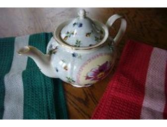 Floral Teapot, MarketSpice Tea & Set of Towels