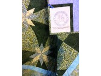 Send you college freshman off to school with a bit of home! Pingree parent Mary Lou Monteiro has hand-made a Pingree colored blue and green Hunter Star patern quilt. 71" x 90". Perfect to snuggle up with when missing home and Pingree!