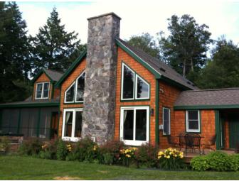 Three night stay for 6 - 10 people at a cozy Post & Beam home with breathtaking views of Sugarbush Mountain in Warren, Vermont. Four bedrooms, soaring stone fireplace, cathedral ceilings, hot tub, ping pong table. Nearby are hiking trails, a Farmers Market, mountain biking and quaint Vermont villages.