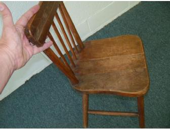 Three framed pieces of country style artwork will be available as one lot along with two "water scoopers". These are not believed to be antique, but rather replica and are in used condition. This lot will be offered along with a child's 75 year old wooden chair that is suitable as a decoration for your home. The lot also contains one throw that is light beige in color and is 46" long and 46" wide with an 11" fringe.