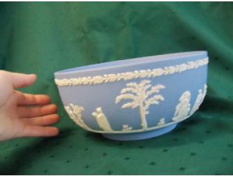 This lot contains two "gently used" wedgwood pieces with the markings "Made in England" on the bottom. The first is a 4 inch tall - 8 inch wide bowl and the second piece is a 4 inch tall candy dish.