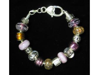 Pandora-style bracelet. Get the look without the price. This bracelet is 8 inches long. Silver-tone with mauve, copper, clear, and silver-tone beads.
