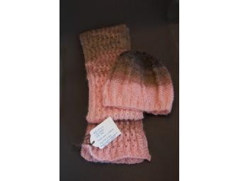 Hand-Knit Pink and Brown Hat & Scarf Combo