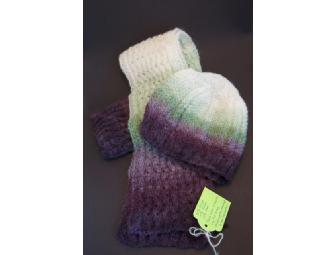 Hand-Knit Purple and Green Hat & Scarf Combo