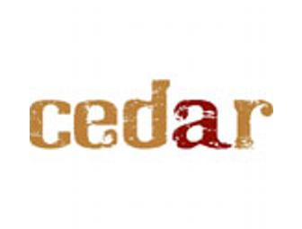 $100 gift card. Good for food and beverage at Cedar Restaurant in Washington, D.C.