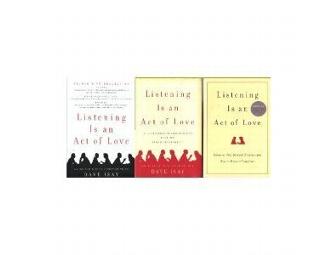 Hardcover book "Listening Is an Act of Love" in slipcover with LISTENING IS an ACT of LOVE: A Celebration of American Life from the StoryCorps Project" (The Penguin Press), A companion CD and paperback book 'Listening is an act of Love: Notes on Ten Beloved Stories . and How to Record You Own". All three included in slipcover case.