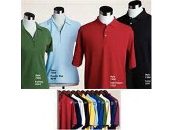 12 Embroidered Pebble Beach Polo shirts, 100% Polyester Moisture Wicking Fabric. Choose from Men's and Women's styles. Embroidered with your choice of logo.