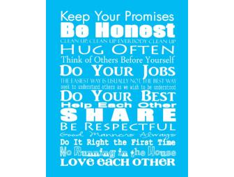 A modern interpretation typography print of traditional family values and house rules depicted in the Subway Art style. Display in a simple 8x10 or matted 11x14 frame on your mantle or wall. Designed by Lucy Osborn, and printed at a professional quality print shop on photo paper.