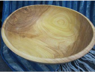 Made of elm, this lovely hand turned bowl is sized for serving salad, bread or fruit. 13 1/2" diameter X 4" high with hand-applied natural oil finish. Crafted by woodturner, David Scrase of Burlington VT.