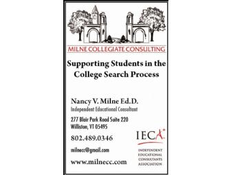 The perfect gift for a child or grandchild. A One hour consultation with Independent Educational Consultant, Nancy Milne.