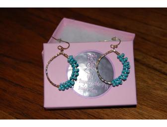 These gold and turqouise-beaded earrings are a unique addition to any outfit. Beautiful!