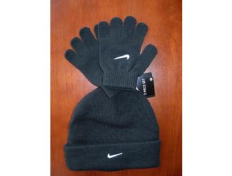 Officially licensed Huskie hat and gloves set by Nike. Black with Gold Huskie "W" on hat, Nike Swish on back. Gloves have Nike logo on the back of the glove. Child's size 8 - 20. 100% acrylic.
