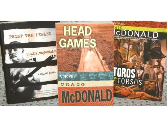 Craig McDonald is an award winning journalist, editor and fiction writer whose first novel, "Head Games", was nominated for the 2008 Edgar Award for Best First Novel by an American Author. This package includes autographed copies of the first three titles in his Hector Lassiter series: "Head Games", "Toros" (a limited edition hard cover) and "Print the Legend".