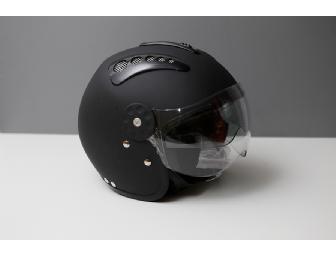 This sylish HCI Open Face helmet is perfect for the rider who wants a good amount of protection, but does not want to be enclosed in a full face helmet. The full face shield is not stationary, it can be flipped up and down. The helmet is constructed of a fiberglass shell with high quality paint and meets or exceeds DOT standards.